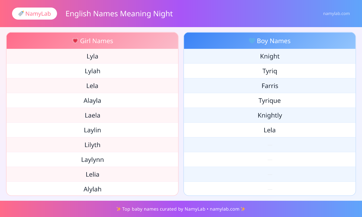 A quick look at popularity across english names meaning night can help you shortlist names that feel both meaningful and well-recognised.