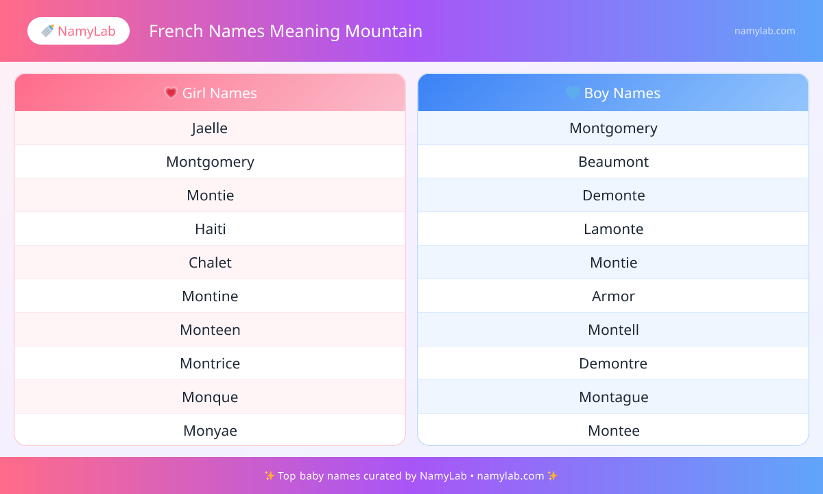 Use this visual breakdown to discover which french names meaning mountain are trending most for boys and girls right now.