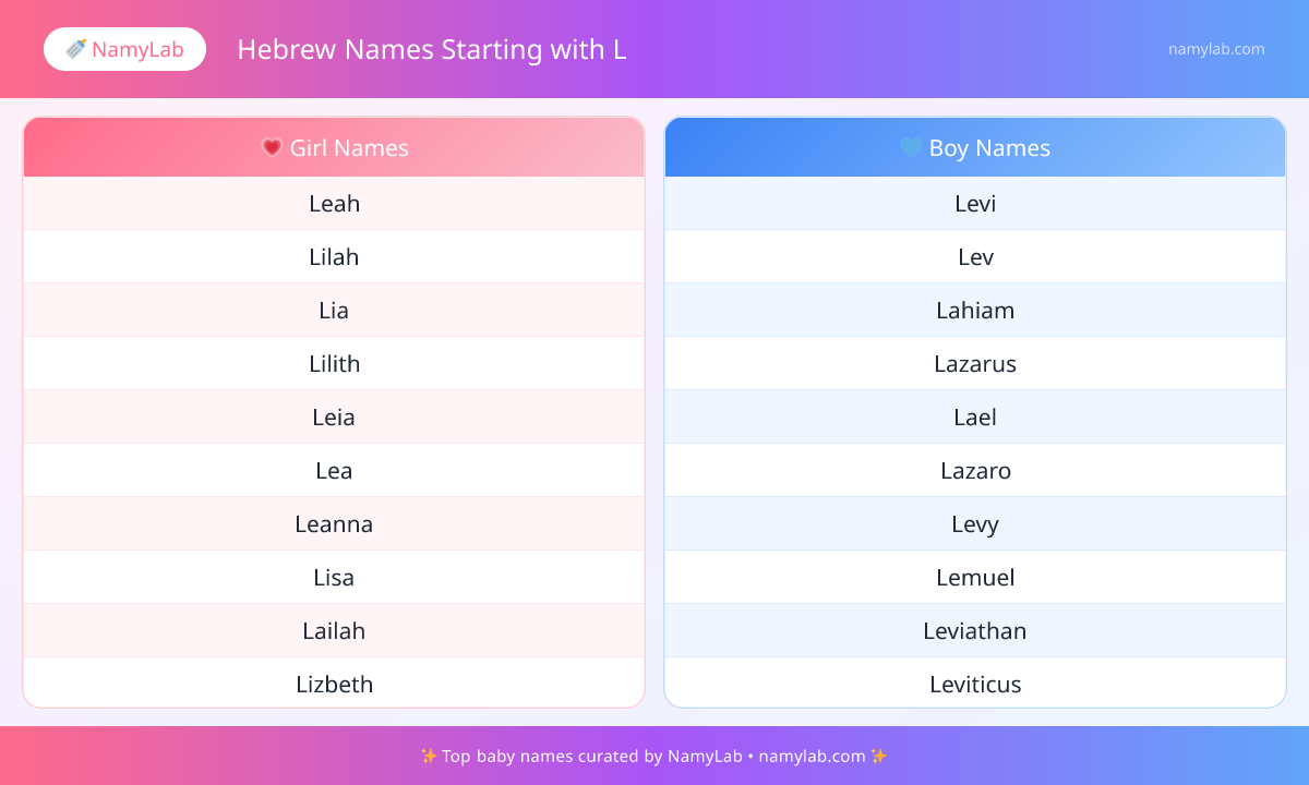 A great baby name should feel special today and still fit years later. Hebrew names starting with l often deliver that balance of meaning, sound, and longevity.