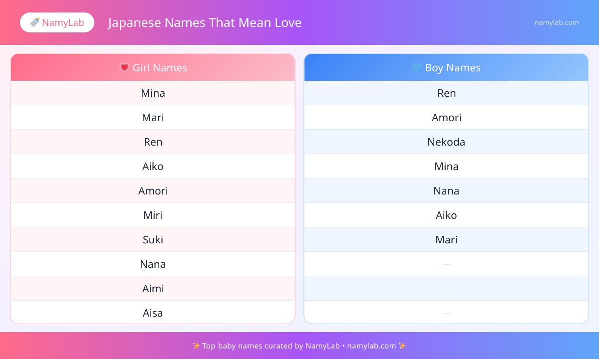 Searching for Japanese names that mean love? This page curates 20+ options under "Japanese Names That Mean Love" to help you explore meaningful choices faster. If you are exploring names with a specific theme, this collection gives you a focused place to begin.