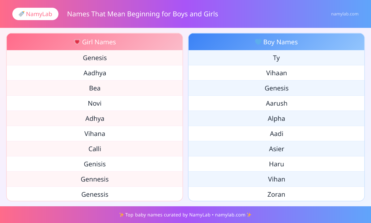Searching for baby names that mean beginning? This page curates 74+ options under "Names That Mean Beginning for Boys and Girls" to help you explore meaningful choices faster. Choosing a meaningful name can feel like a big decision, and this list is designed to make that process easier.