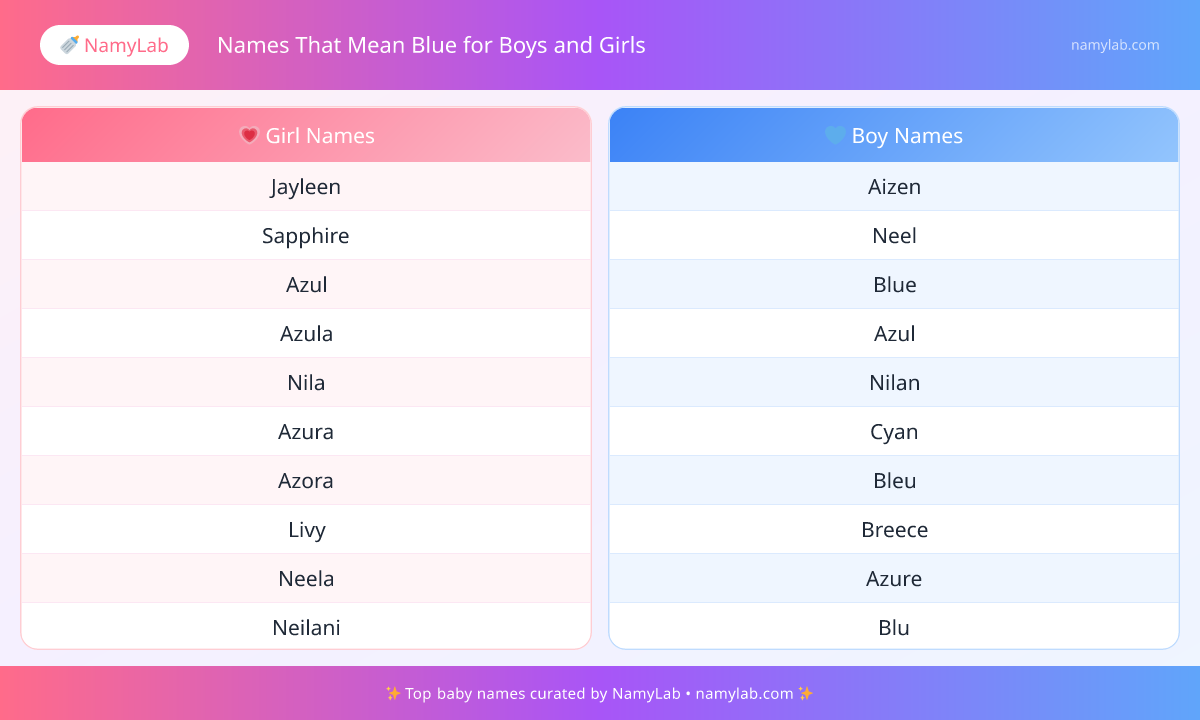 Searching for baby names that mean blue? This page curates 113+ options under "Names That Mean Blue for Boys and Girls" to help you explore meaningful choices faster. Many families choose a meaning-led approach first, then narrow by style and sound, and that is the flow this page supports.