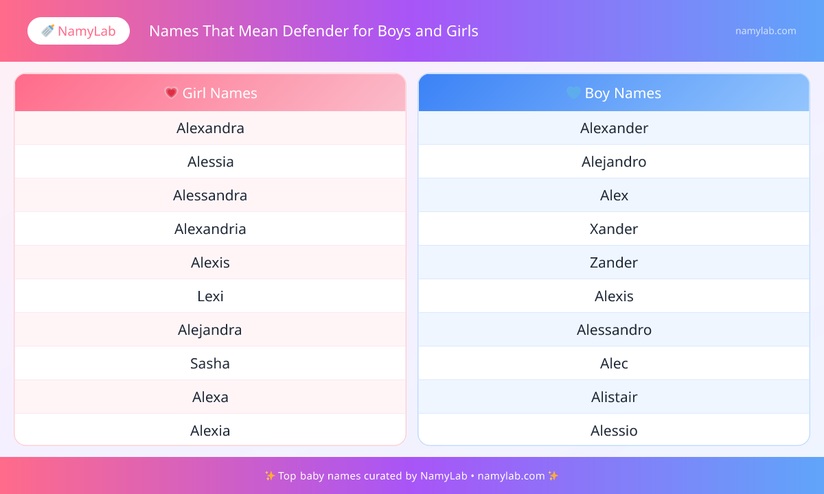 Explore the most searched names that mean defender side by side. The infographic below shows the leading names for both boys and girls.