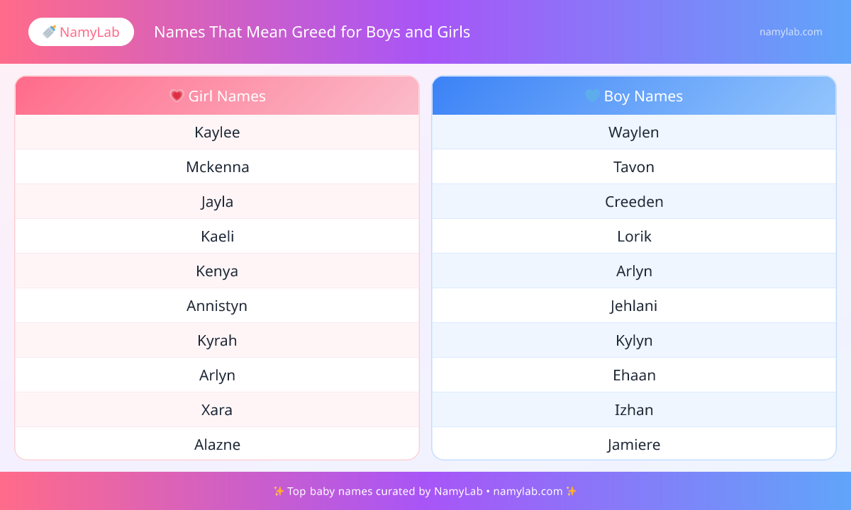 Searching for baby names that mean greed? This page curates 171+ options under "Names That Mean Greed for Boys and Girls" to help you explore meaningful choices faster. When you want a name with clear symbolism, having a curated list like this can save hours of searching.