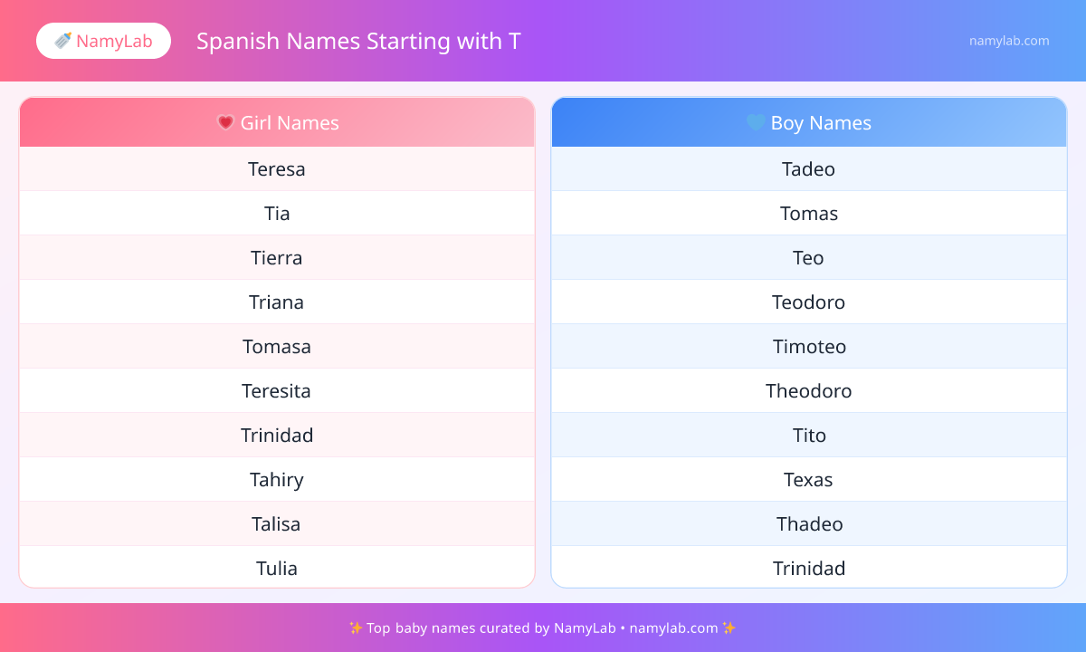 Spanish names starting with t are frequently selected by parents who want a name that carries symbolism while still feeling modern and usable.